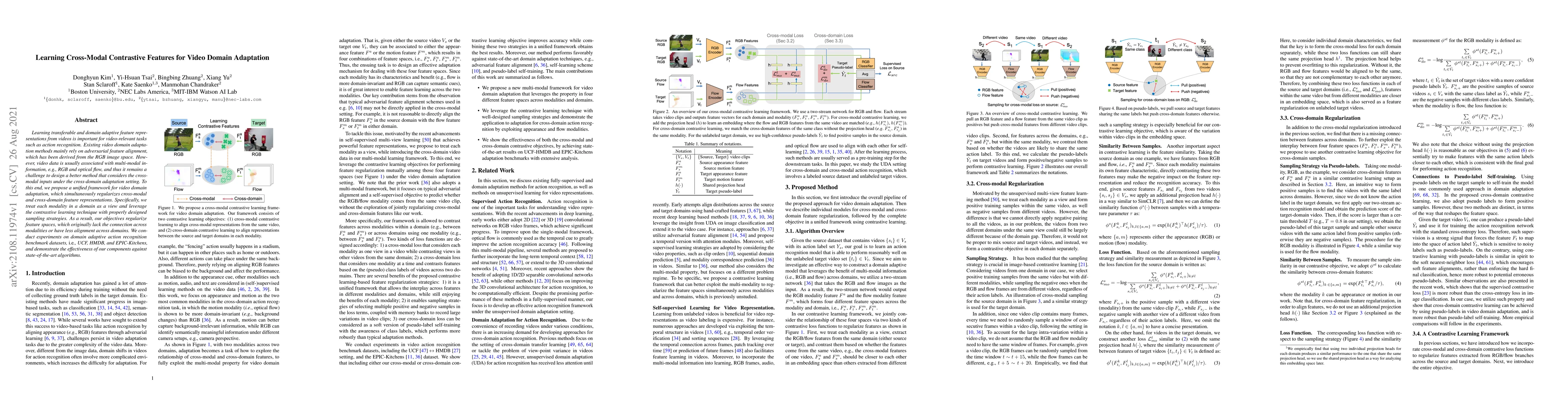 This paper proposes a unified framework for video domain adaptation that leverages cross-modal contrastive learning to regularize both cross-modal and cross-domain feature representations, addressing the challenge of multi-modal inputs in video data. Experiments on UCF, HMDB, and EPIC-Kitchens datasets show the method's effectiveness compared to state-of-the-art algorithms.