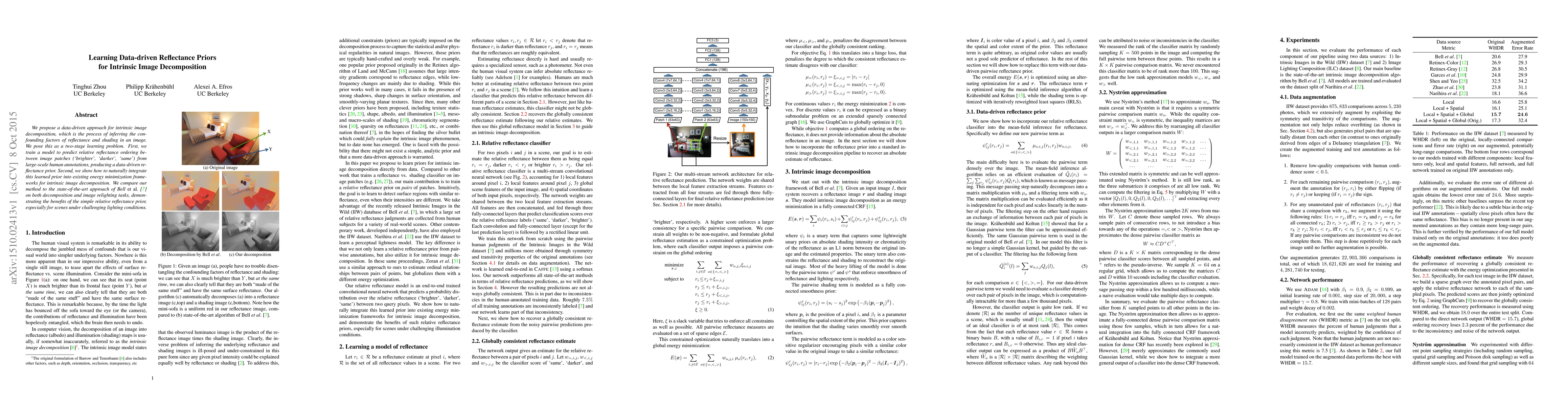 The paper introduces a data-driven method for intrinsic image decomposition, training a model to predict relative reflectance from human annotations, and integrates this learned prior into energy minimization frameworks. It shows improved performance over state-of-the-art methods, particularly in challenging lighting conditions.