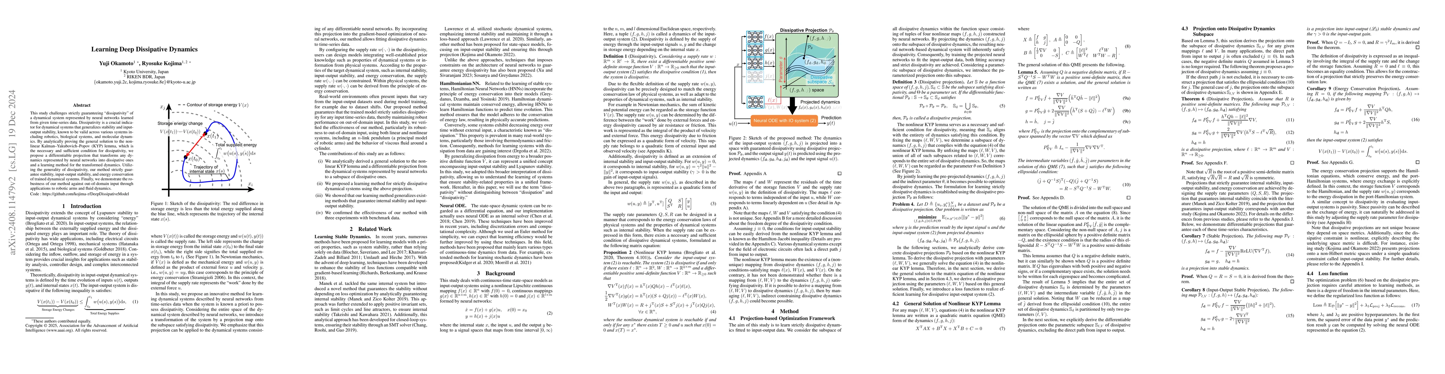 This research introduces a differentiable projection method to transform neural network dynamics into dissipative ones, ensuring stability and energy conservation, validated through applications in robotics and fluid dynamics. The approach analytically proves the solution to the nonlinear KYP lemma, guaranteeing dissipativity for generalized dynamical systems.