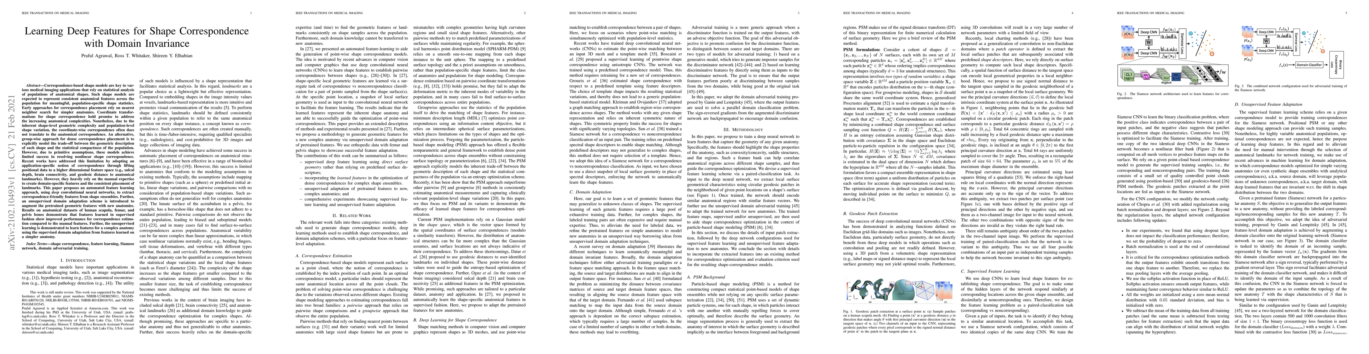 This paper proposes an automated deep learning approach to extract correspondence-friendly features from anatomical shapes using convolutional neural networks, and introduces an unsupervised domain adaptation scheme to enhance feature learning across different anatomical complexities. Results show improved correspondence estimation over manual feature methods and demonstrate the effectiveness of the domain adaptation technique.