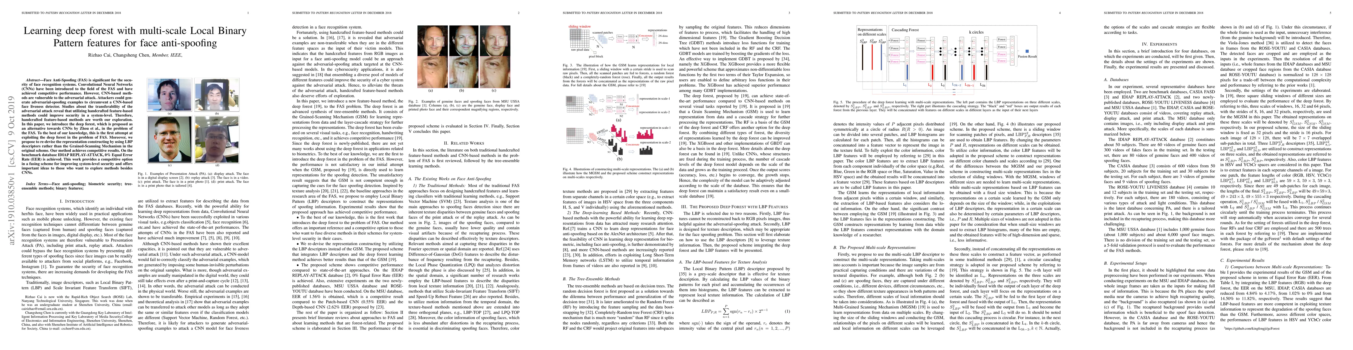 A new face anti-spoofing method uses deep forest with multi-scale Local Binary Pattern features to detect liveness in face recognition systems, achieving competitive results on benchmark databases.