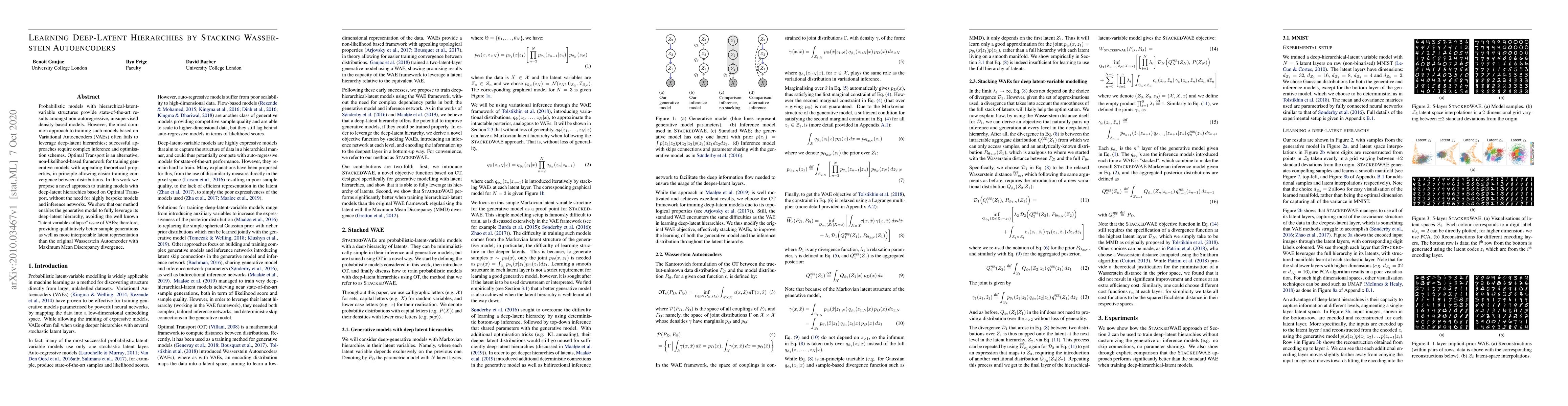 This paper proposes a novel method for training deep-latent hierarchical models using stacked Wasserstein Autoencoders based on Optimal Transport, which avoids the "latent variable collapse" issue of traditional VAEs and provides better sample generations and more interpretable latent representations.
