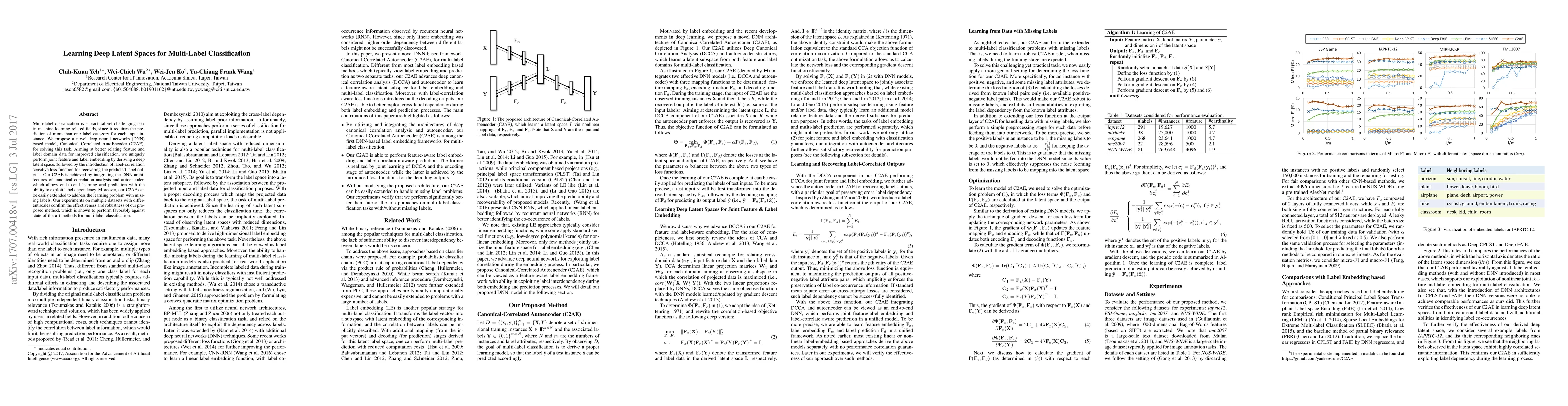 This paper introduces a novel deep neural network model called Canonical Correlated AutoEncoder (C2AE) for multi-label classification, which employs joint feature and label embedding and a label-correlation sensitive loss function, demonstrating superior performance against state-of-the-art methods on various datasets.