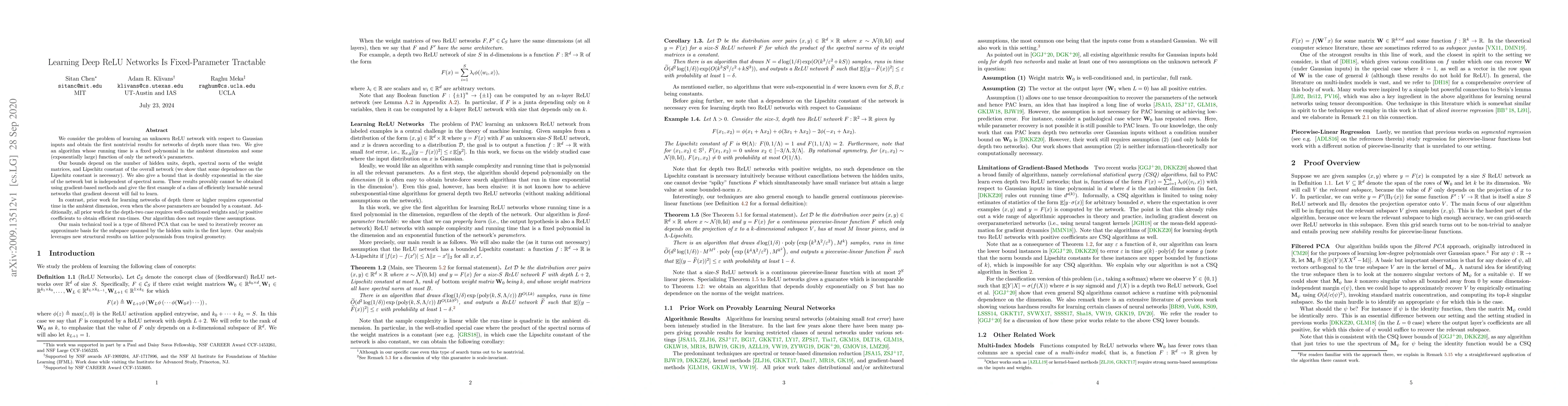 We consider the problem of learning an unknown ReLU network with respect to Gaussian inputs and obtain the first nontrivial results for networks of depth more than two. We give an algorithm whose running time is a fixed polynomial in the ambient dimension and some (exponentially large) function of only the network's parameters. Our bounds depend on the number of hidden units, depth, spectral norm of the weight matrices, and Lipschitz constant of the overall network (we show that some dependence on the Lipschitz constant is necessary). We also give a bound that is doubly exponential in the size of the network but is independent of spectral norm. These results provably cannot be obtained using gradient-based methods and give the first example of a class of efficiently learnable neural networks that gradient descent will fail to learn. In contrast, prior work for learning networks of depth three or higher requires exponential time in the ambient dimension, even when the above parameters are bounded by a constant. Additionally, all prior work for the depth-two case requires well-conditioned weights and/or positive coefficients to obtain efficient run-times. Our algorithm does not require these assumptions. Our main technical tool is a type of filtered PCA that can be used to iteratively recover an approximate basis for the subspace spanned by the hidden units in the first layer. Our analysis leverages new structural results on lattice polynomials from tropical geometry.
