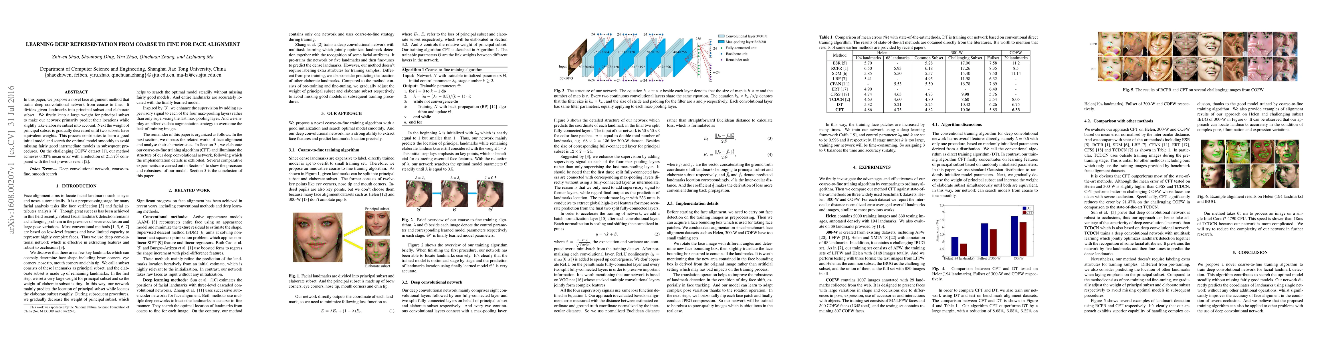 A new face alignment method uses a coarse-to-fine approach to train deep convolutional networks, achieving 6.33% mean error with a 21.37% reduction in previous best results on the COFW dataset.