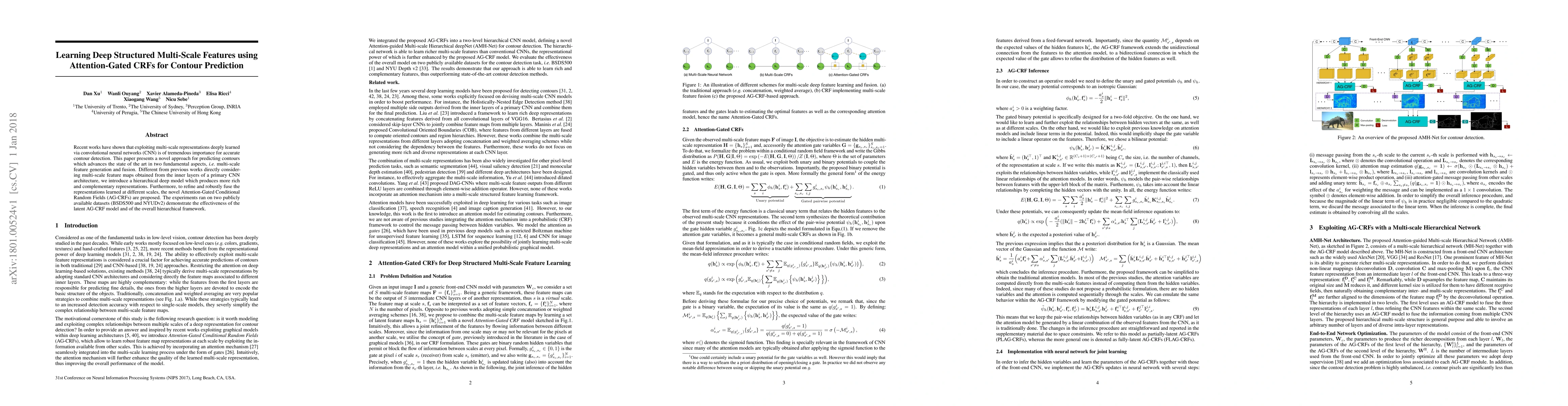 This research introduces a novel hierarchical deep model that leverages attention-gated conditional random fields (AG-CRFs) to generate and fuse multi-scale features for contour prediction, outperforming existing methods. Experiments on BSDS500 and NYUDv2 datasets highlight the model's superior performance in multi-scale feature generation and fusion.