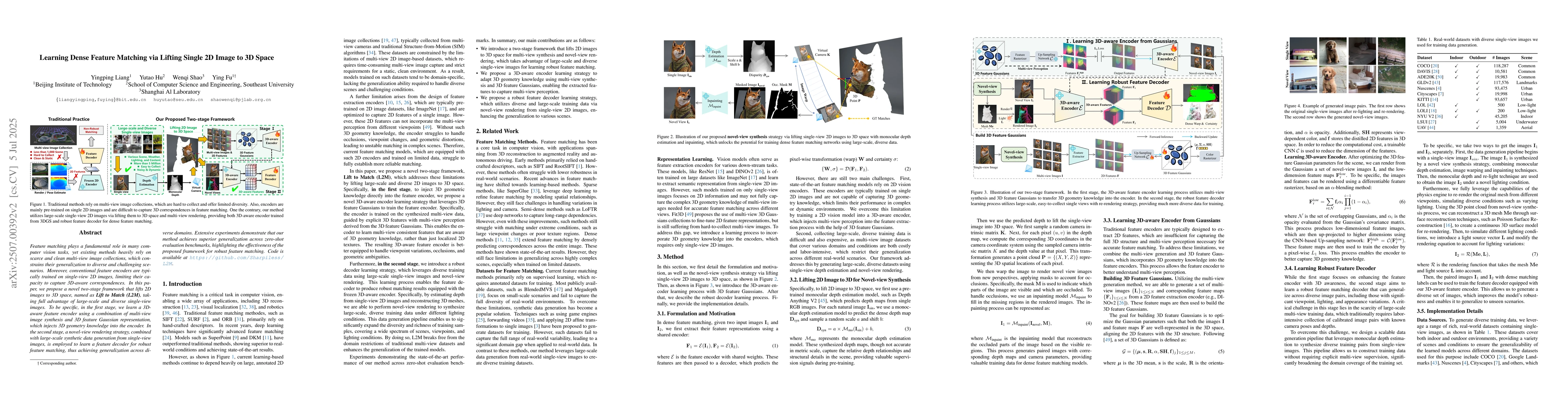 Feature matching plays a fundamental role in many computer vision tasks, yet existing methods heavily rely on scarce and clean multi-view image collections, which constrains their generalization to diverse and challenging scenarios. Moreover, conventional feature encoders are typically trained on single-view 2D images, limiting their capacity to capture 3D-aware correspondences. In this paper, we propose a novel two-stage framework that lifts 2D images to 3D space, named as \textbf{Lift to Match (L2M)}, taking full advantage of large-scale and diverse single-view images. To be specific, in the first stage, we learn a 3D-aware feature encoder using a combination of multi-view image synthesis and 3D feature Gaussian representation, which injects 3D geometry knowledge into the encoder. In the second stage, a novel-view rendering strategy, combined with large-scale synthetic data generation from single-view images, is employed to learn a feature decoder for robust feature matching, thus achieving generalization across diverse domains. Extensive experiments demonstrate that our method achieves superior generalization across zero-shot evaluation benchmarks, highlighting the effectiveness of the proposed framework for robust feature matching.