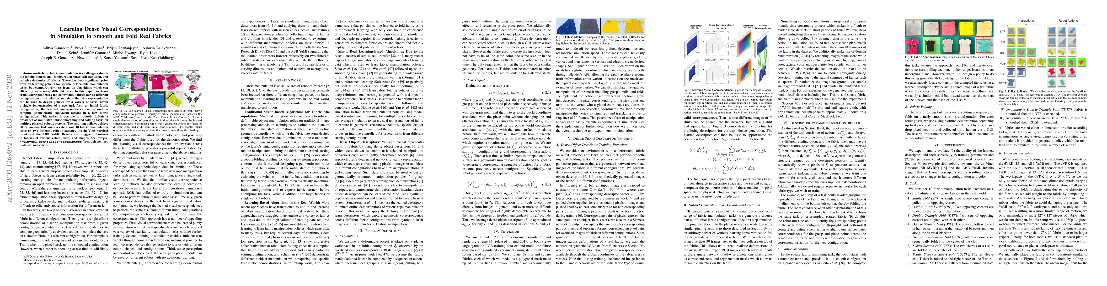 Robotic fabric manipulation is challenging due to the infinite dimensional configuration space, self-occlusion, and complex dynamics of fabrics. There has been significant prior work on learning policies for specific deformable manipulation tasks, but comparatively less focus on algorithms which can efficiently learn many different tasks. In this paper, we learn visual correspondences for deformable fabrics across different configurations in simulation and show that this representation can be used to design policies for a variety of tasks. Given a single demonstration of a new task from an initial fabric configuration, the learned correspondences can be used to compute geometrically equivalent actions in a new fabric configuration. This makes it possible to robustly imitate a broad set of multi-step fabric smoothing and folding tasks on multiple physical robotic systems. The resulting policies achieve 80.3% average task success rate across 10 fabric manipulation tasks on two different robotic systems, the da Vinci surgical robot and the ABB YuMi. Results also suggest robustness to fabrics of various colors, sizes, and shapes. See https://tinyurl.com/fabric-descriptors for supplementary material and videos.