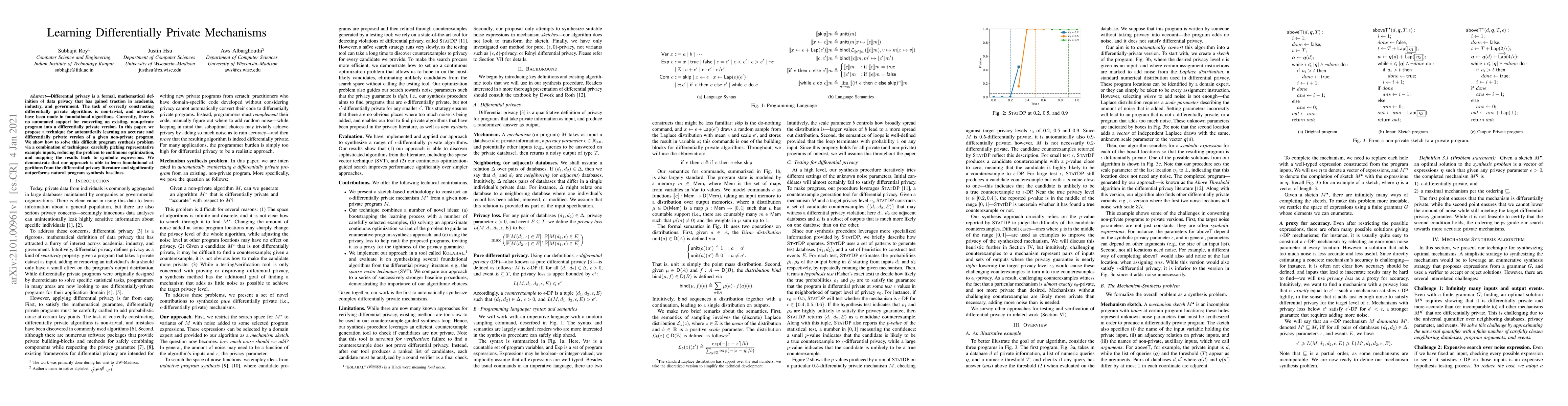 This paper proposes an automated technique to convert non-private programs into differentially private versions by leveraging representative examples, continuous optimization, and symbolic expression mapping. The method successfully learns foundational differentially private algorithms, outperforming existing synthesis baselines.