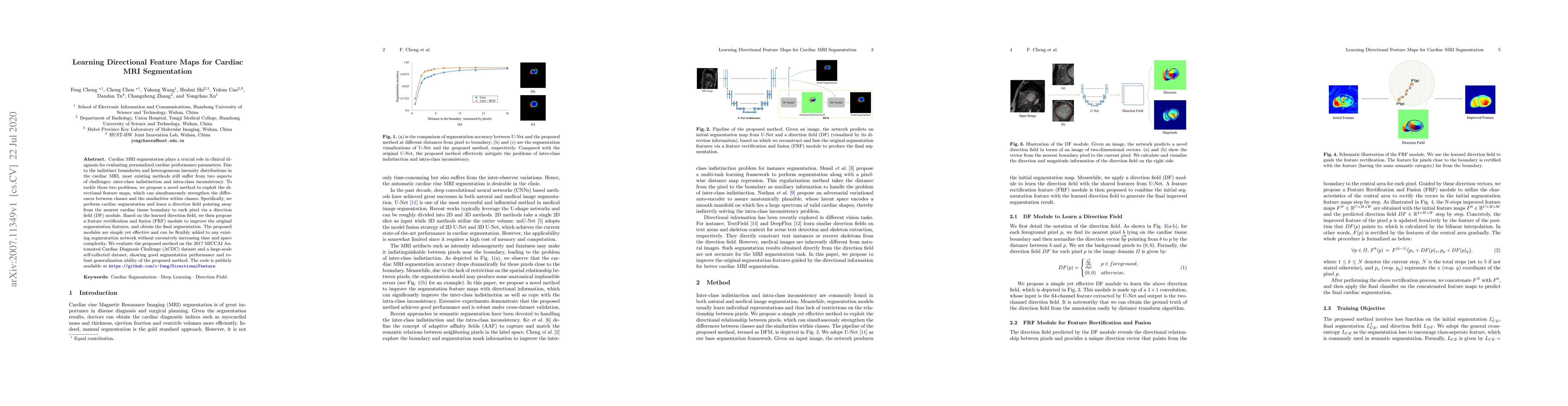 A new method for cardiac MRI segmentation uses directional feature maps to improve accuracy by distinguishing between classes and within classes. The approach showed good performance on two datasets with robust generalization ability.