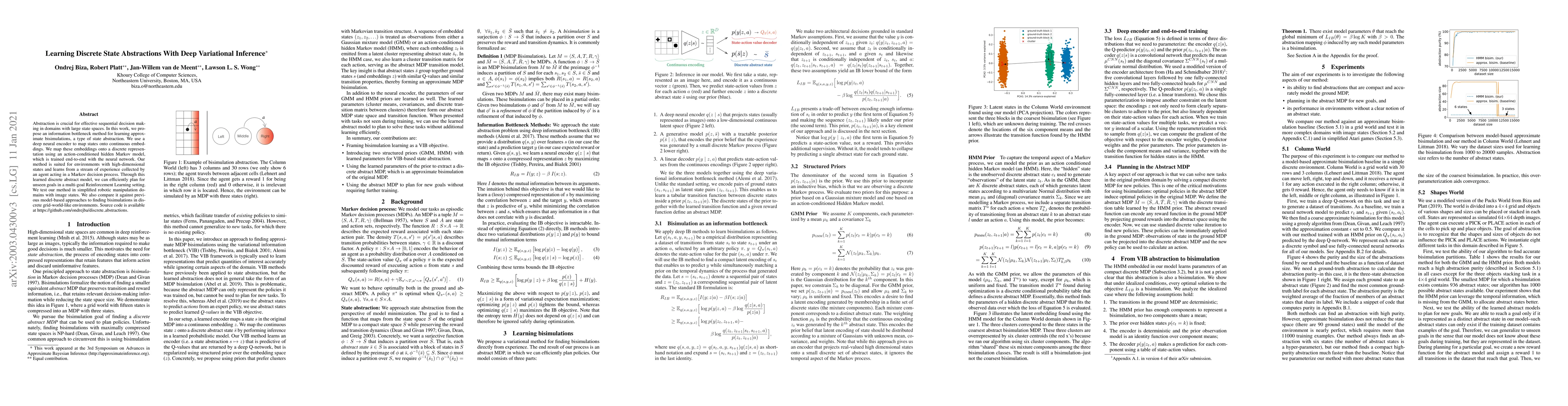 This paper proposes a method for learning discrete state abstractions using deep variational inference, allowing efficient planning in multi-goal reinforcement learning settings with large state spaces.