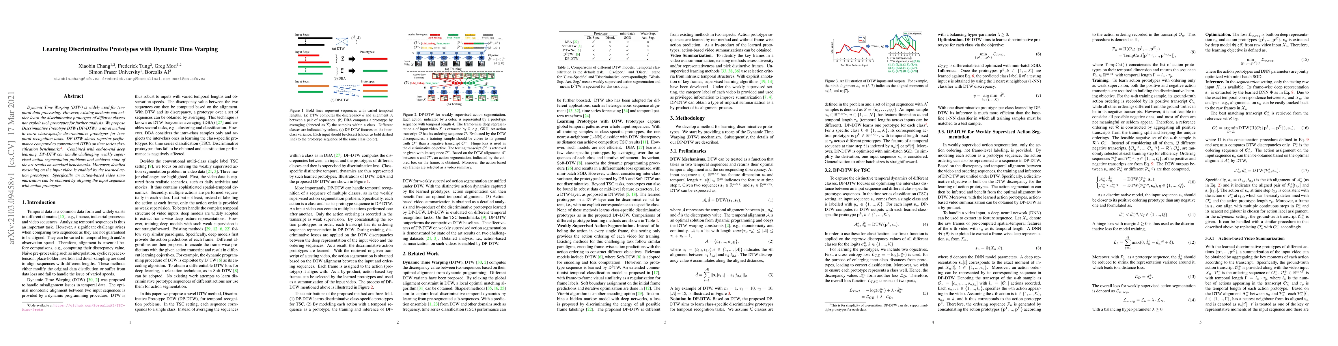 Dynamic Time Warping (DTW) is widely used for temporal data processing. However, existing methods can neither learn the discriminative prototypes of different classes nor exploit such prototypes for further analysis. We propose Discriminative Prototype DTW (DP-DTW), a novel method to learn class-specific discriminative prototypes for temporal recognition tasks. DP-DTW shows superior performance compared to conventional DTWs on time series classification benchmarks. Combined with end-to-end deep learning, DP-DTW can handle challenging weakly supervised action segmentation problems and achieves state of the art results on standard benchmarks. Moreover, detailed reasoning on the input video is enabled by the learned action prototypes. Specifically, an action-based video summarization can be obtained by aligning the input sequence with action prototypes.