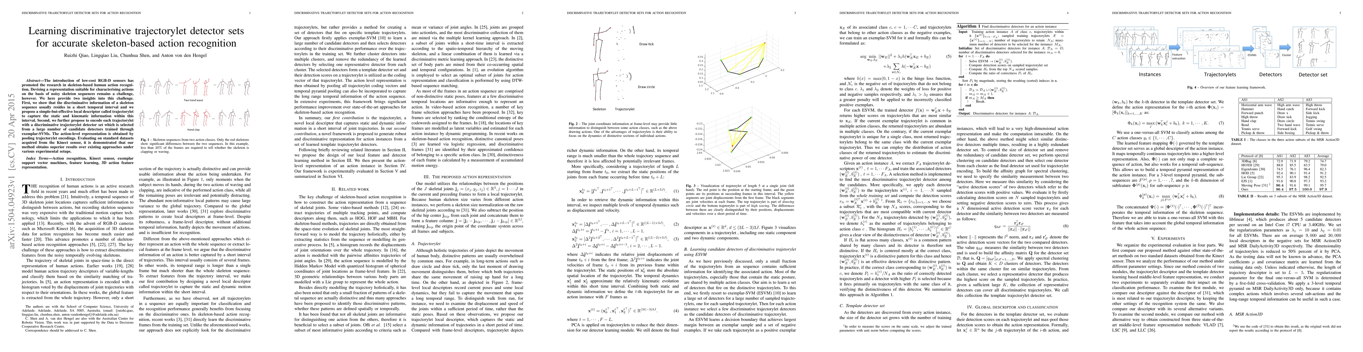 This paper proposes a method for skeleton-based action recognition using local descriptors called trajectorylets to capture short, discriminative intervals in noisy skeleton sequences. It further employs a set of discriminative trajectorylet detectors selected via exemplar-SVMs, achieving superior results on standard datasets compared to existing approaches.