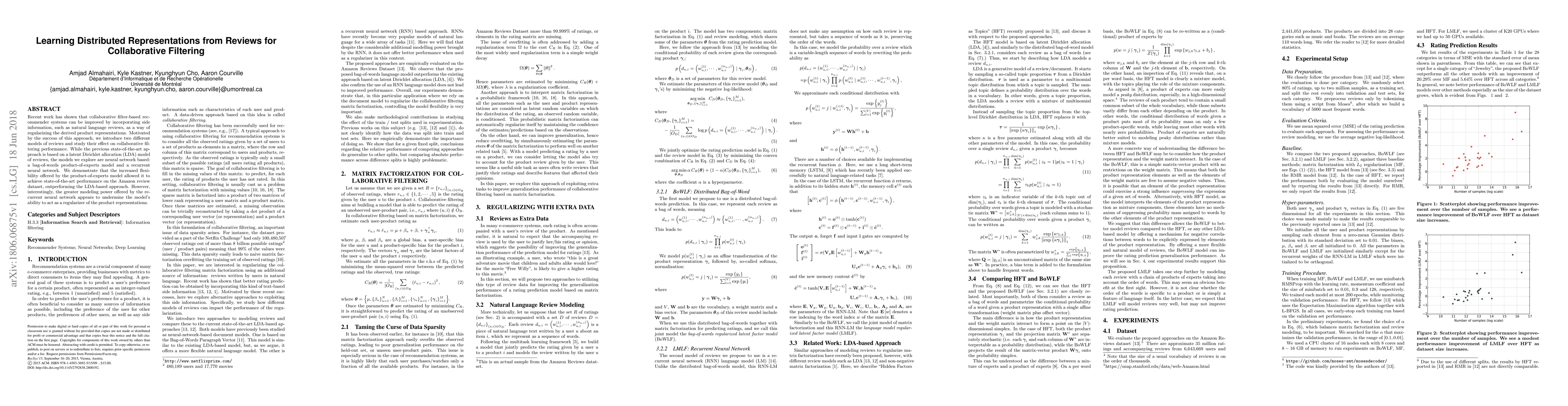 Researchers developed two neural network-based models to incorporate review data into collaborative filtering systems for improved performance, finding that the product-of-experts model achieved state-of-the-art results on an Amazon dataset.