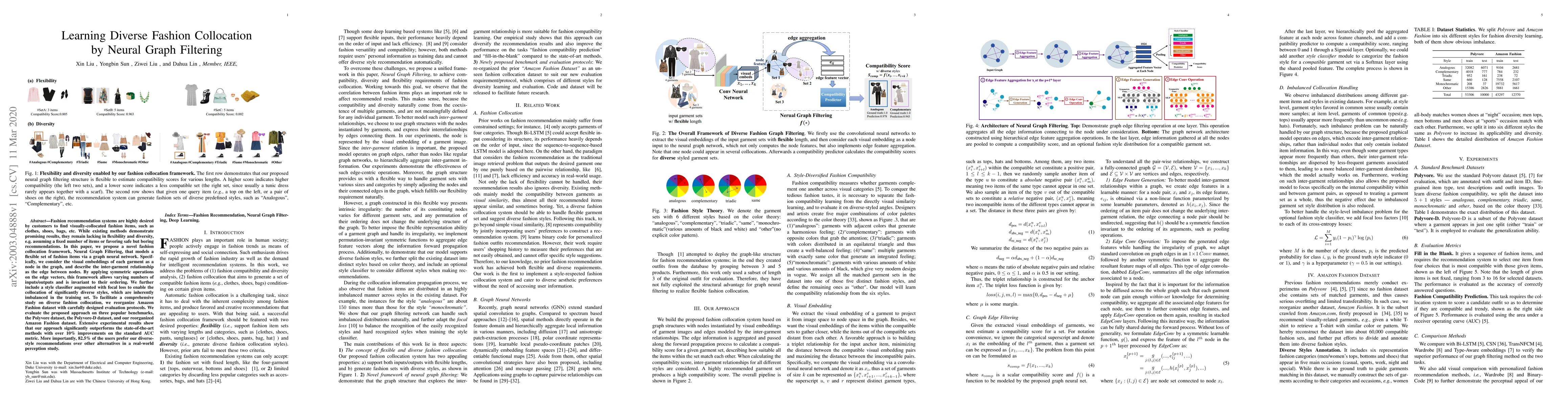 This paper introduces Neural Graph Filtering for diverse fashion collocation, outperforming existing methods with over 10% improvements on AUC metric and receiving a preference rating of 82.5% from users.