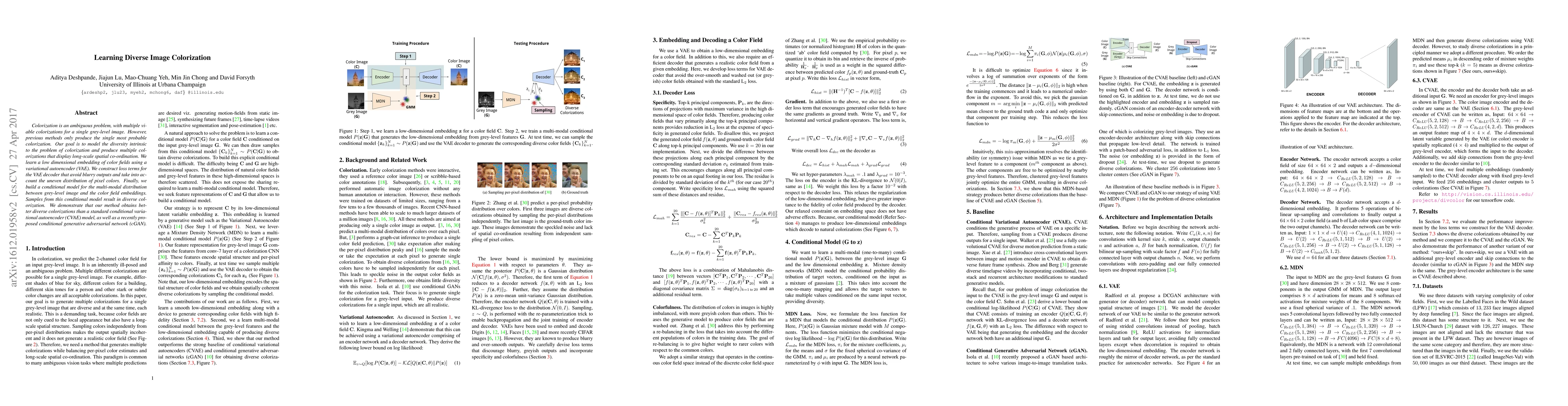 This paper proposes a method to generate diverse colorizations for images by learning a low-dimensional embedding of color fields using a variational autoencoder. It outperforms traditional models in producing varied colorization results.