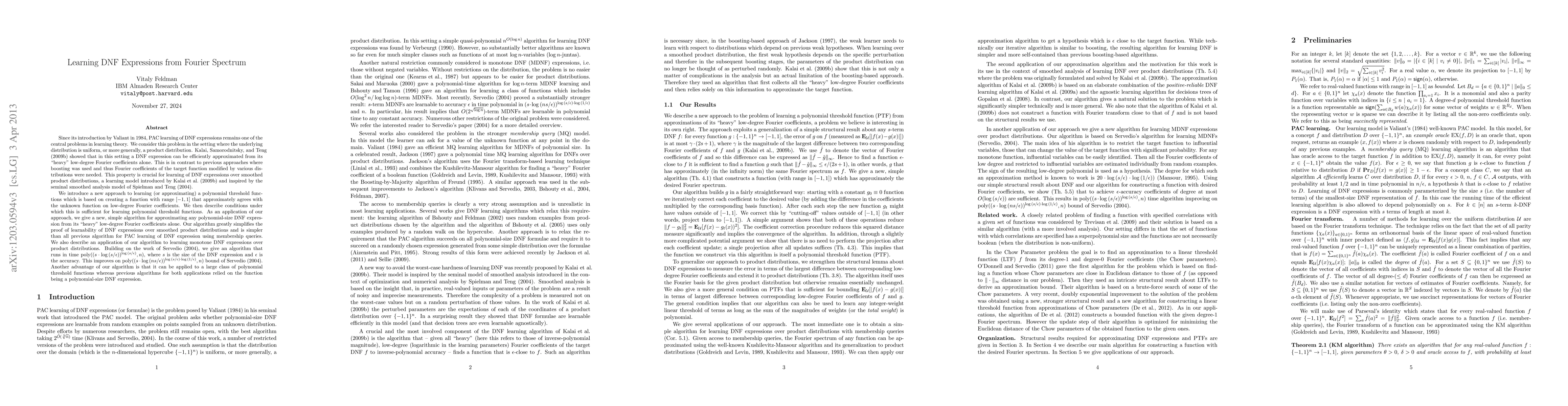 Researchers have developed a new algorithm for learning DNF expressions from their Fourier spectrum, simplifying the proof of learnability over smoothed product distributions. The algorithm improves upon existing bounds for learning monotone DNF expressions.