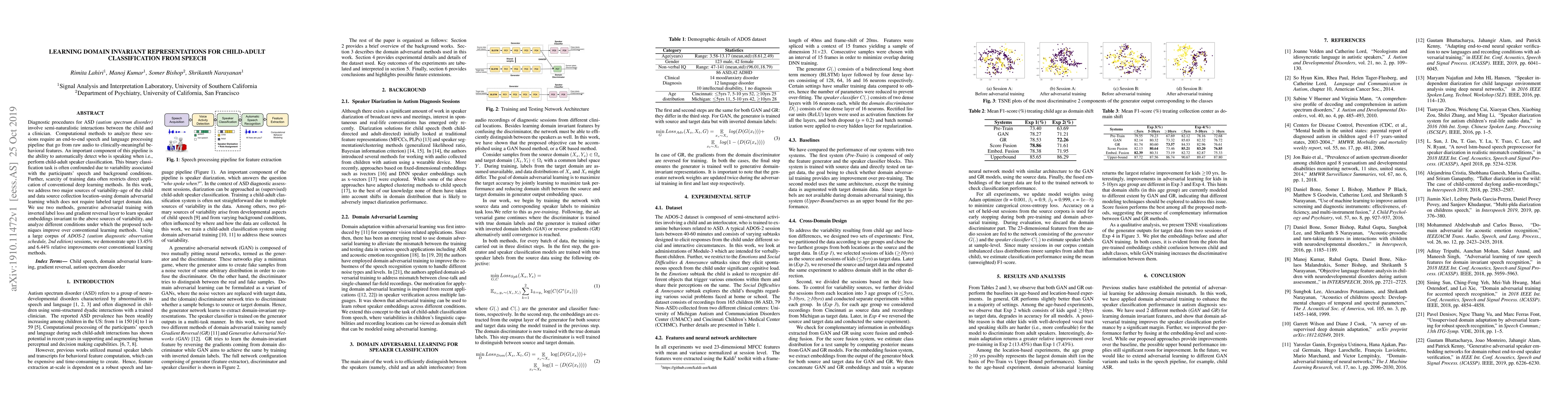 The paper introduces a domain adversarial training approach for speaker classification in autism diagnosis sessions, utilizing GAN and GR methods to learn domain-invariant features and improve classification performance.