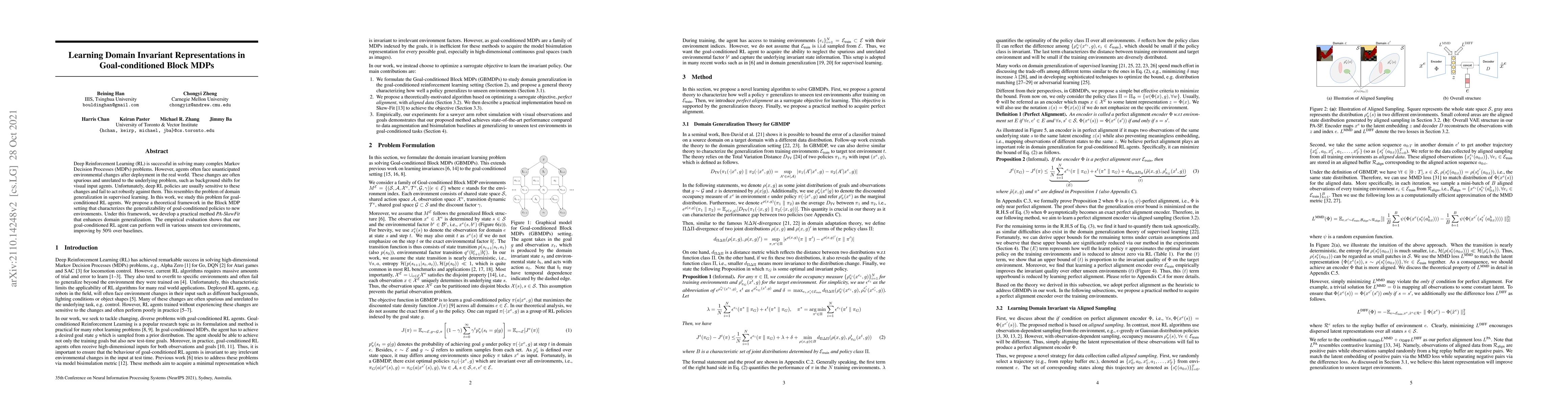 Researchers developed a method to improve domain generalization in goal-conditioned reinforcement learning agents, enabling them to perform well in new unseen environments, with 50% improvement over baseline performance.