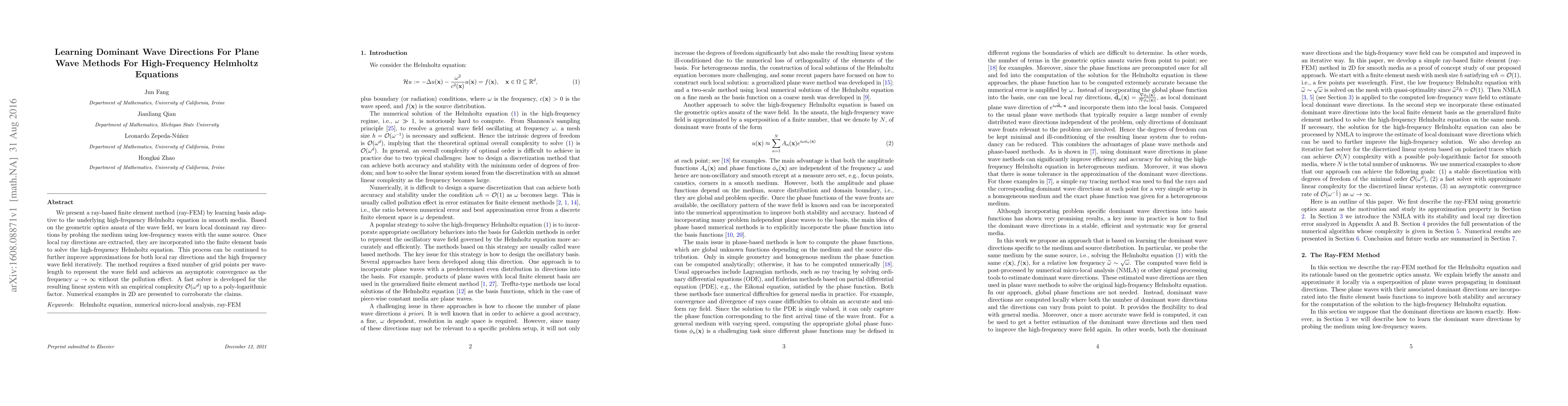 This paper introduces a ray-based finite element method (ray-FEM) that adaptively learns dominant wave directions to solve high-frequency Helmholtz equations in smooth media. The method iteratively extracts local ray directions using low-frequency waves and incorporates them into the finite element basis, achieving asymptotic convergence without the pollution effect.