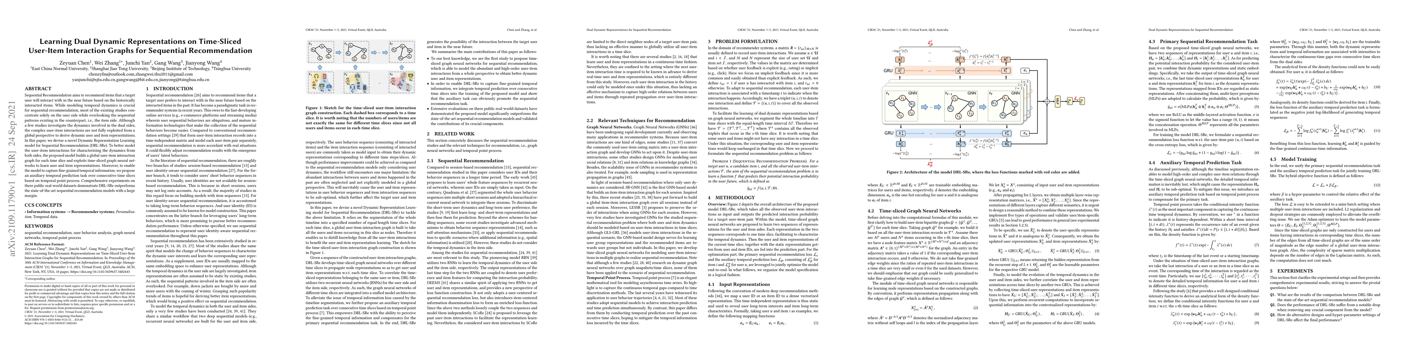 This paper introduces DRL-SRe, a model for sequential recommendation that leverages time-sliced user-item interaction graphs to learn dual dynamic representations for users and items. It outperforms existing models by capturing fine-grained temporal dynamics and utilizing a temporal prediction task.
