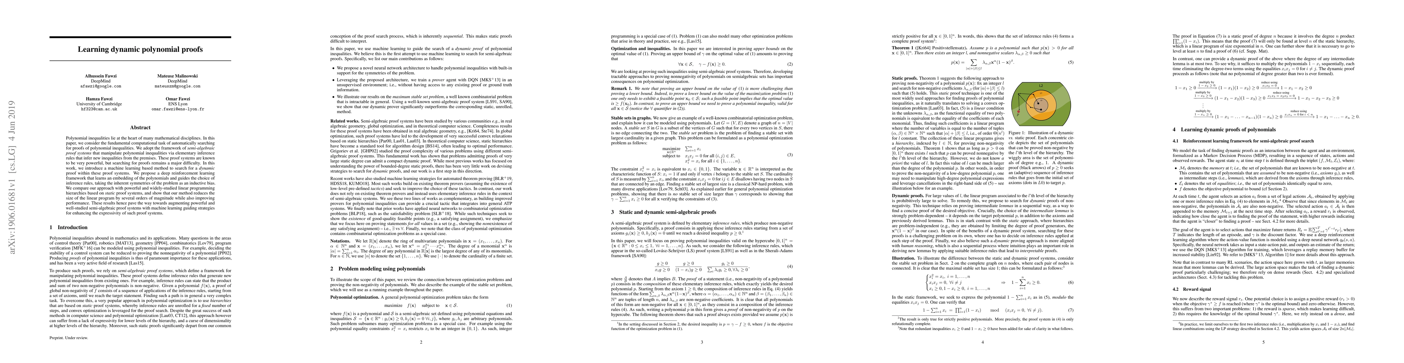 Polynomial inequalities lie at the heart of many mathematical disciplines. In this paper, we consider the fundamental computational task of automatically searching for proofs of polynomial inequalities. We adopt the framework of semi-algebraic proof systems that manipulate polynomial inequalities via elementary inference rules that infer new inequalities from the premises. These proof systems are known to be very powerful, but searching for proofs remains a major difficulty. In this work, we introduce a machine learning based method to search for a dynamic proof within these proof systems. We propose a deep reinforcement learning framework that learns an embedding of the polynomials and guides the choice of inference rules, taking the inherent symmetries of the problem as an inductive bias. We compare our approach with powerful and widely-studied linear programming hierarchies based on static proof systems, and show that our method reduces the size of the linear program by several orders of magnitude while also improving performance. These results hence pave the way towards augmenting powerful and well-studied semi-algebraic proof systems with machine learning guiding strategies for enhancing the expressivity of such proof systems.