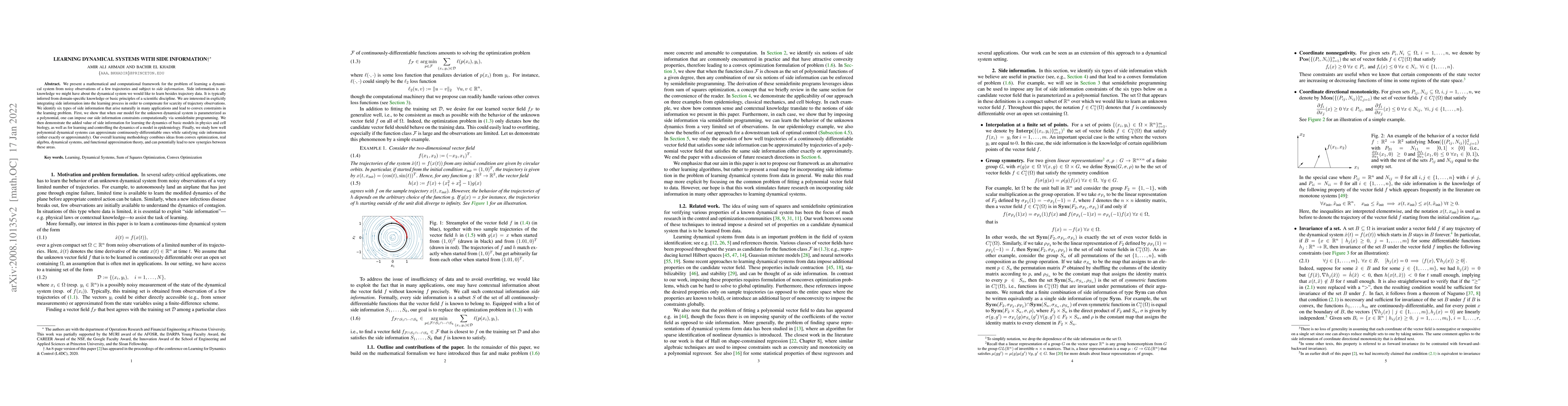 Researchers developed a method to learn dynamical systems from limited data using side information, improving accuracy in physics, cell biology, and epidemiology. Their approach combines convex optimization, algebra, and functional approximation theory to incorporate prior knowledge into the learning process.