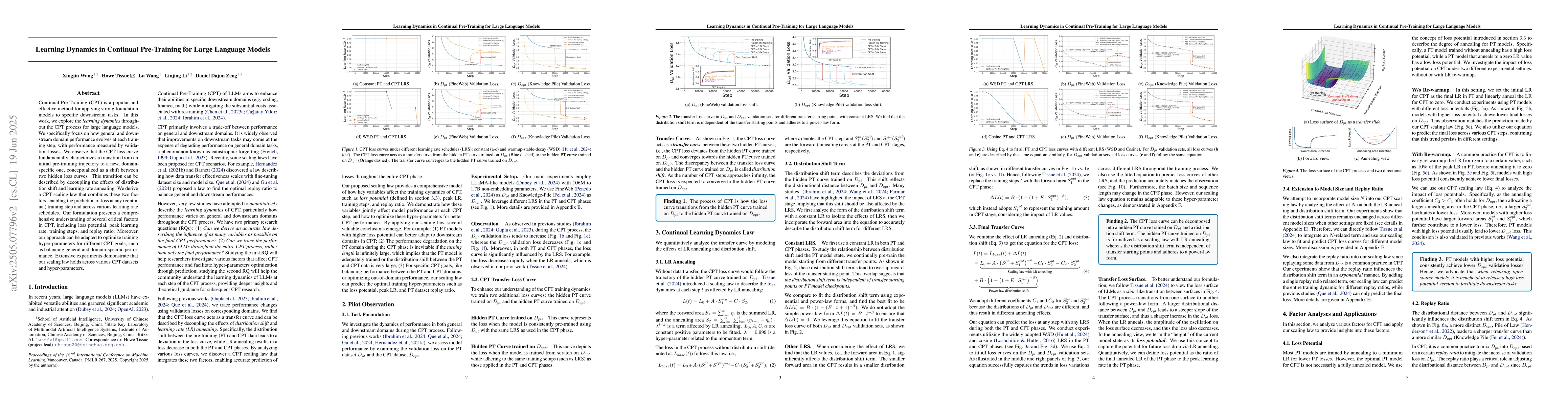 This work distinguishes itself by providing a comprehensive understanding of CPT learning dynamics, deriving a novel scaling law, and demonstrating its applicability across various datasets and hyperparameters.