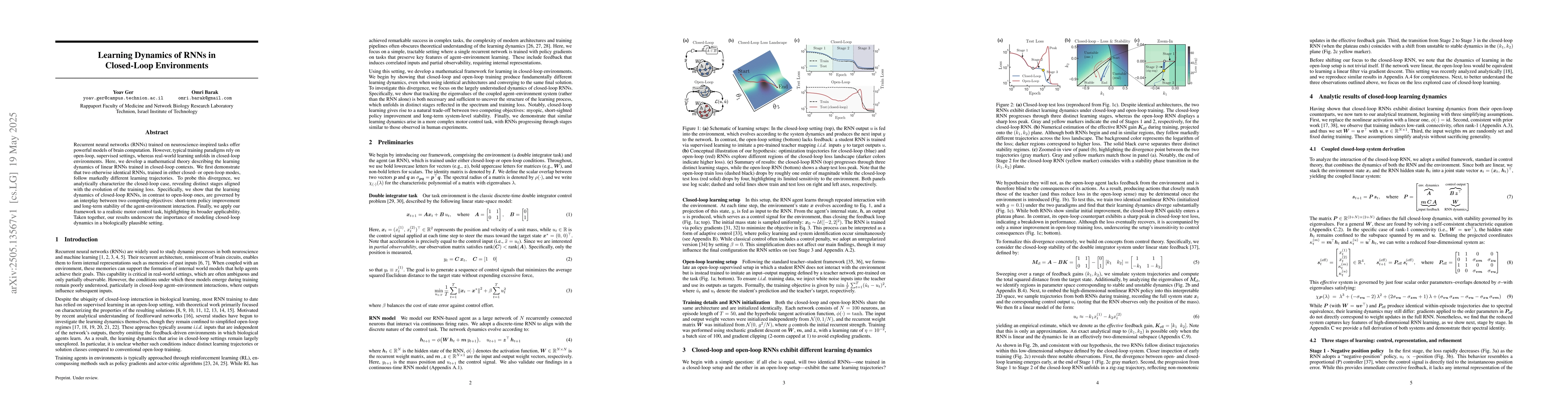 Researchers developed a theory explaining how Recurrent Neural Networks learn in closed-loop environments, finding that they prioritize short-term policy improvement and long-term stability over open-loop learning.