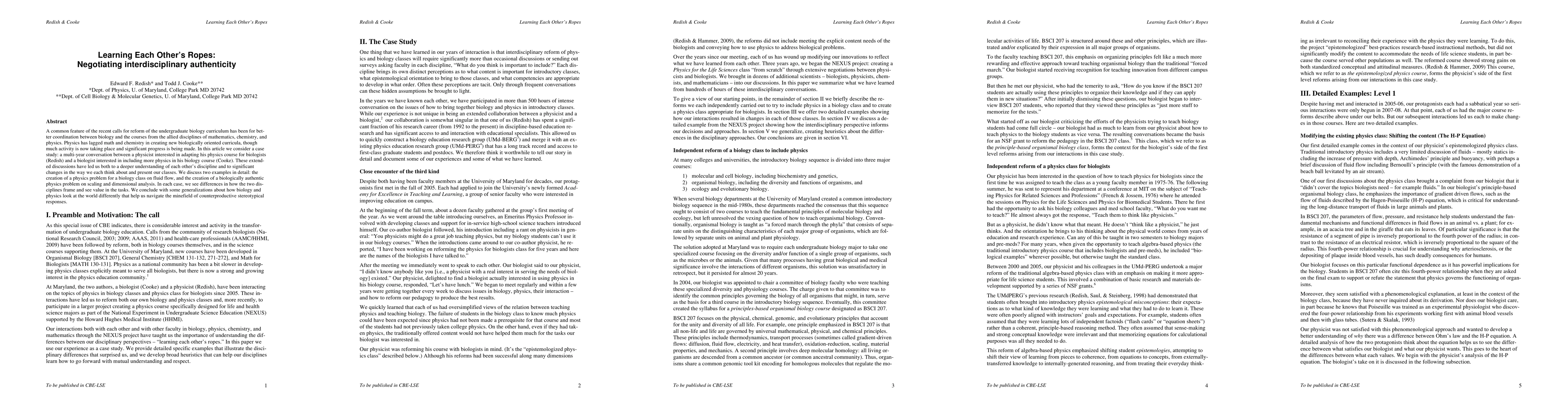 A common feature of the recent calls for reform of the undergraduate biology curriculum has been for better coordination between biology and the courses from the allied disciplines of mathematics, chemistry, and physics. Physics has lagged math and chemistry in creating new biologically oriented curricula, though much activity is now taking place and significant progress is being made. In this article we consider a case study: a multi-year conversation between a physicist interested in adapting his physics course for biologists (Redish) and a biologist interested in including more physics in his biology course (Cooke). These extended discussions have led us both to a deeper understanding of each others' discipline and to significant changes in the way we each think about and present our classes. We discuss two examples in detail: the creation of a physics problem for a biology class on fluid flow, and the creation of a biologically authentic physics problem on scaling and dimensional analysis. In each case, we see differences in how the two disciplines frame and see value in the tasks. We conclude with some generalizations about how biology and physics look at the world differently that help us navigate the minefield of counterproductive stereotypical responses.
