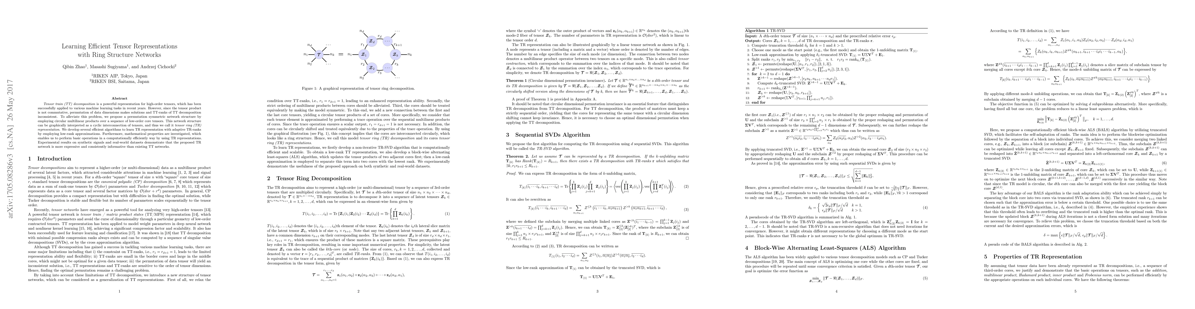 This paper proposes a tensor ring (TR) network structure to efficiently represent high-order tensors using permutation-invariant circular multilinear products. The TR representation, along with adaptive TR-ranks, offers consistent solutions across dimension permutations and is computationally efficient for basic operations.