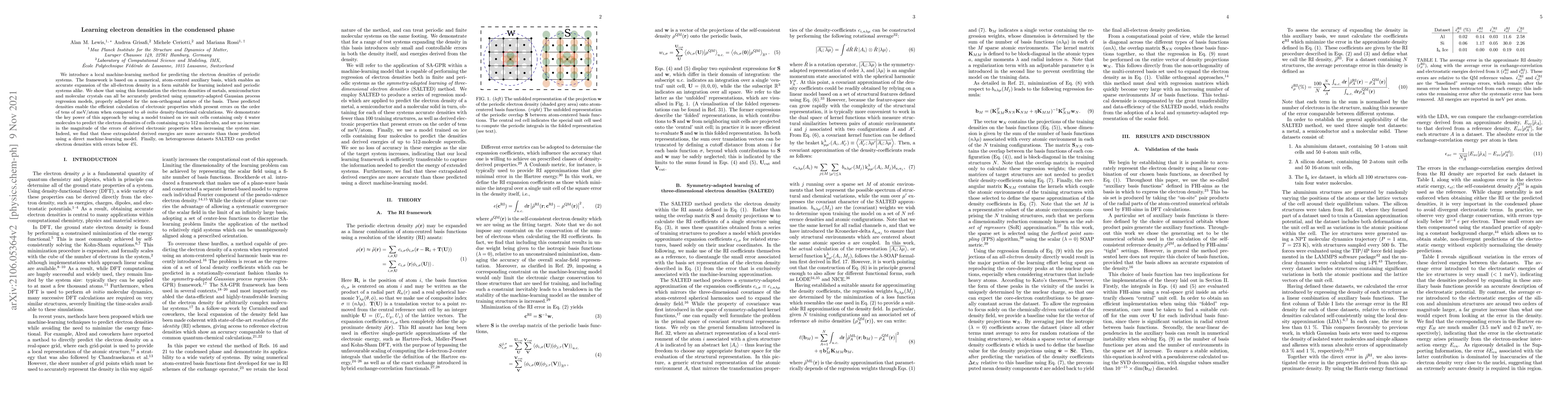 We introduce a local machine-learning method for predicting the electron densities of periodic systems. The framework is based on a numerical, atom-centred auxiliary basis, which enables an accurate expansion of the all-electron density in a form suitable for learning isolated and periodic systems alike. We show that using this formulation the electron densities of metals, semiconductors and molecular crystals can all be accurately predicted using symmetry-adapted Gaussian process regression models, properly adjusted for the non-orthogonal nature of the basis. These predicted densities enable the efficient calculation of electronic properties which present errors on the order of tens of meV/atom when compared to ab initio density-functional calculations. We demonstrate the key power of this approach by using a model trained on ice unit cells containing only 4 water molecules to predict the electron densities of cells containing up to 512 molecules, and see no increase in the magnitude of the errors of derived electronic properties when increasing the system size. Indeed, we find that these extrapolated derived energies are more accurate than those predicted using a direct machine-learning model. Finally, on heterogeneous datasets SALTED can predict electron densities with errors below 4%.