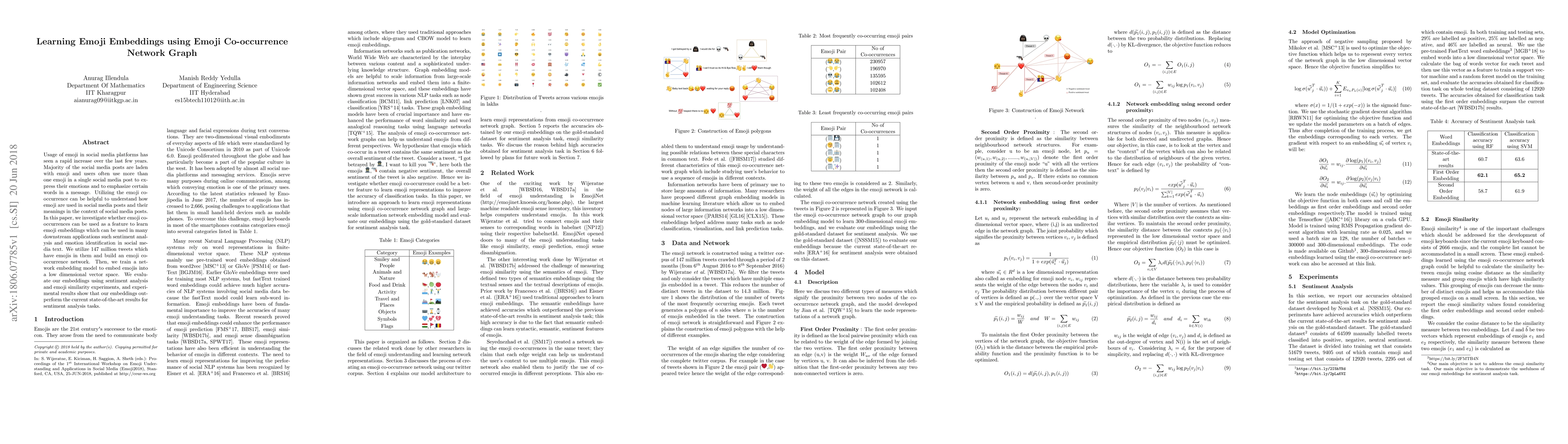This paper explores learning emoji embeddings using an emoji co-occurrence network derived from 147 million tweets. The study demonstrates that these embeddings outperform existing methods in sentiment analysis, indicating their effectiveness for downstream applications like emotion identification in social media text.
