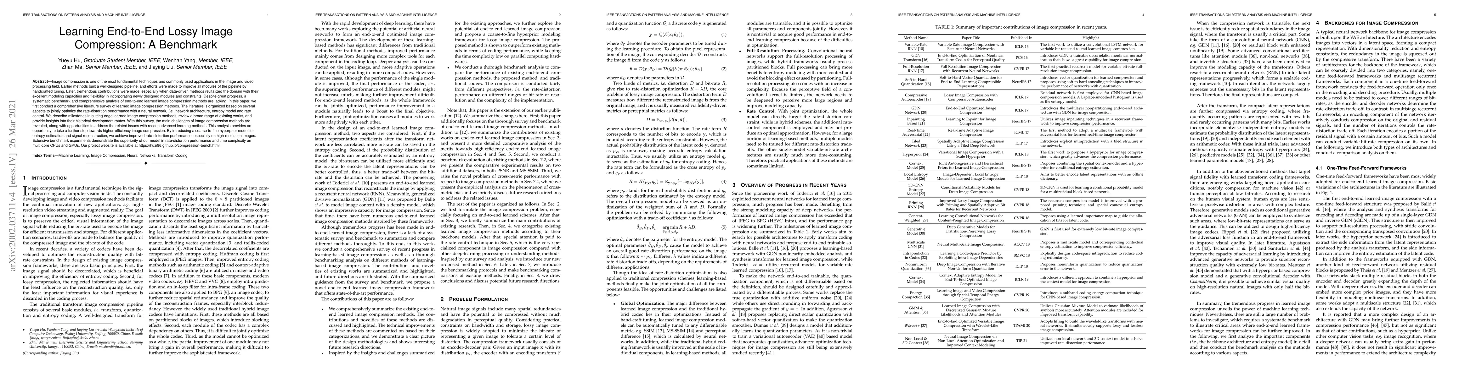 This paper conducts a comprehensive survey of end-to-end learned image compression methods, highlighting key network architectures, entropy models, and rate control strategies. The authors introduce a new coarse-to-fine hyperprior model, achieving superior rate-distortion performance and efficiency, and provide a benchmark for future research.