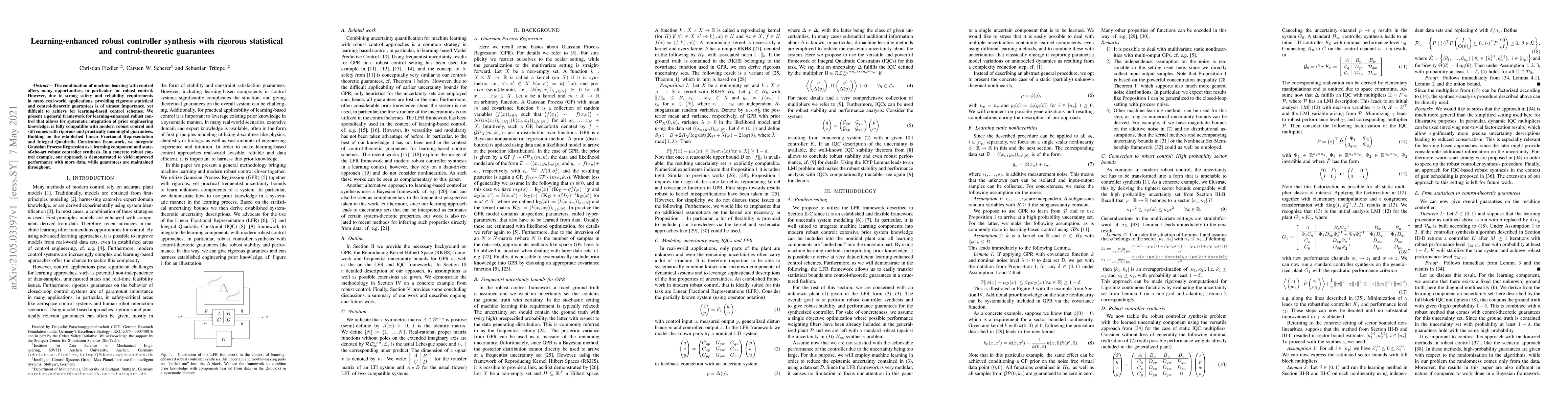 The combination of machine learning with control offers many opportunities, in particular for robust control. However, due to strong safety and reliability requirements in many real-world applications, providing rigorous statistical and control-theoretic guarantees is of utmost importance, yet difficult to achieve for learning-based control schemes. We present a general framework for learning-enhanced robust control that allows for systematic integration of prior engineering knowledge, is fully compatible with modern robust control and still comes with rigorous and practically meaningful guarantees. Building on the established Linear Fractional Representation and Integral Quadratic Constraints framework, we integrate Gaussian Process Regression as a learning component and state-of-the-art robust controller synthesis. In a concrete robust control example, our approach is demonstrated to yield improved performance with more data, while guarantees are maintained throughout.