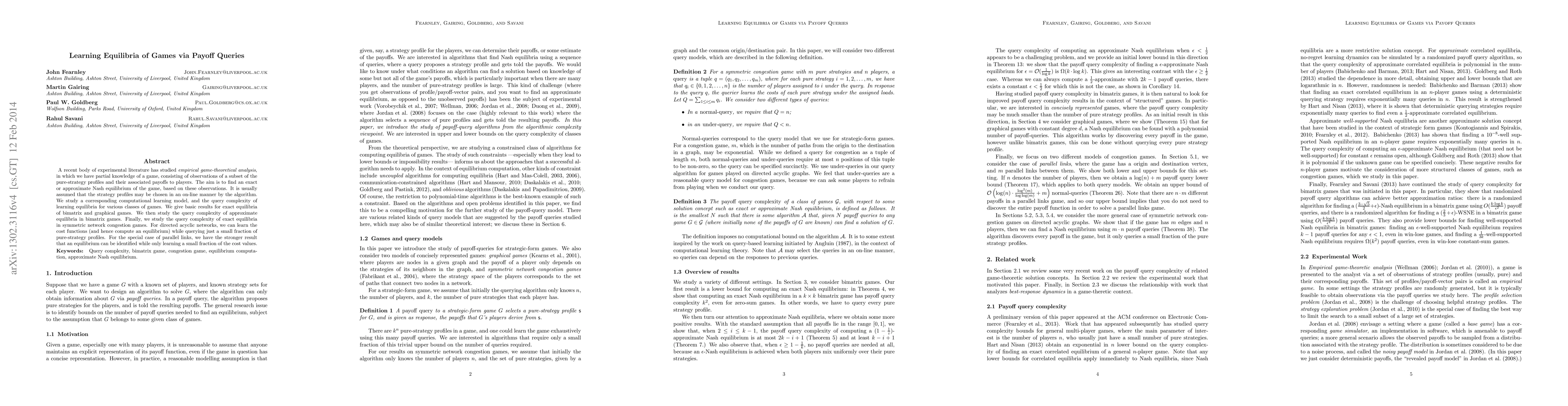 Researchers developed a computational learning model to identify Nash equilibria in games based on partial observations, achieving query complexity improvements for network congestion games. They found that just a small fraction of pure-strategy profiles or cost values can be sufficient to learn the game's equilibrium.