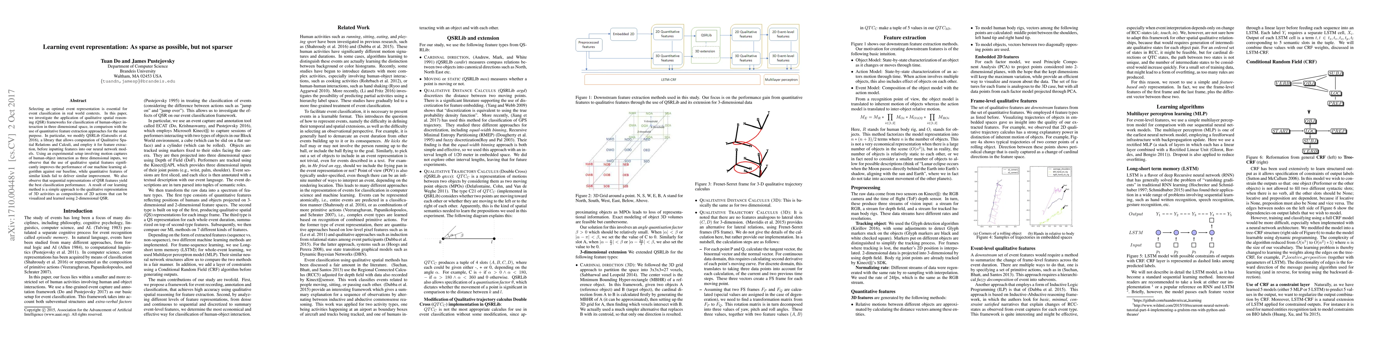 Selecting an optimal event representation is essential for event classification in real world contexts. In this paper, we investigate the application of qualitative spatial reasoning (QSR) frameworks for classification of human-object interaction in three dimensional space, in comparison with the use of quantitative feature extraction approaches for the same purpose. In particular, we modify QSRLib, a library that allows computation of Qualitative Spatial Relations and Calculi, and employ it for feature extraction, before inputting features into our neural network models. Using an experimental setup involving motion captures of human-object interaction as three dimensional inputs, we observe that the use of qualitative spatial features significantly improves the performance of our machine learning algorithm against our baseline, while quantitative features of similar kinds fail to deliver similar improvement. We also observe that sequential representations of QSR features yield the best classification performance. A result of our learning method is a simple approach to the qualitative representation of 3D activities as compositions of 2D actions that can be visualized and learned using 2-dimensional QSR.