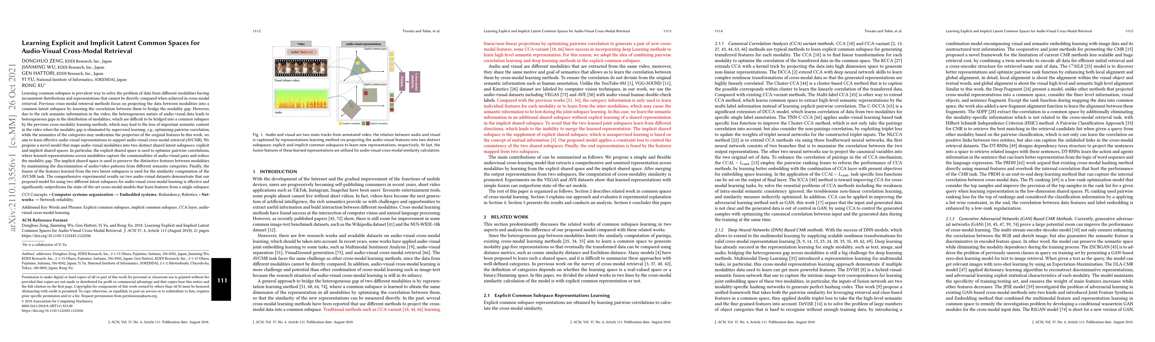 This research proposes a novel model for audio-visual cross-modal retrieval that utilizes two distinct latent subspaces—explicit and implicit—to bridge modality gaps and preserve semantic information. The explicit space captures commonalities, while the implicit space maintains distinctive features, leading to superior performance over existing single-subspace models.