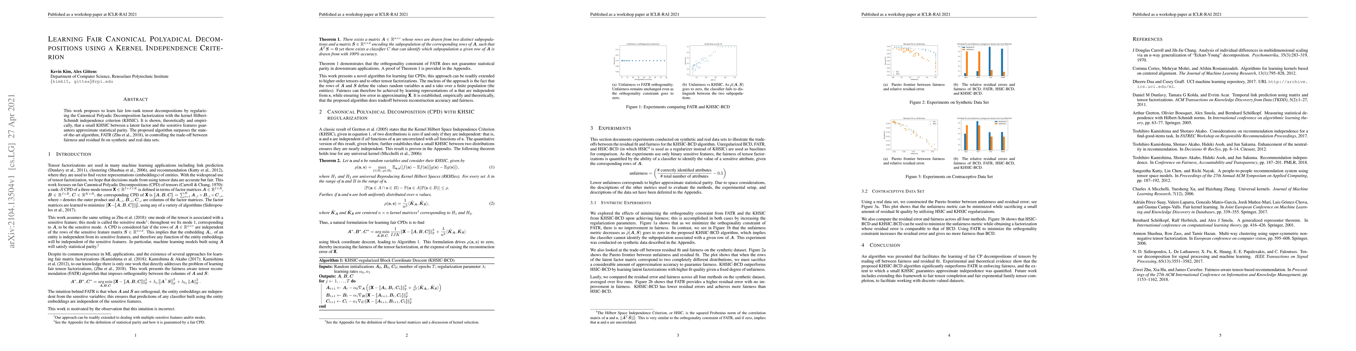 Researchers developed a new method to learn fair low-rank tensor decompositions using kernel independence criterion, surpassing the state-of-the-art algorithm in controlling trade-off between fairness and residual fit.
