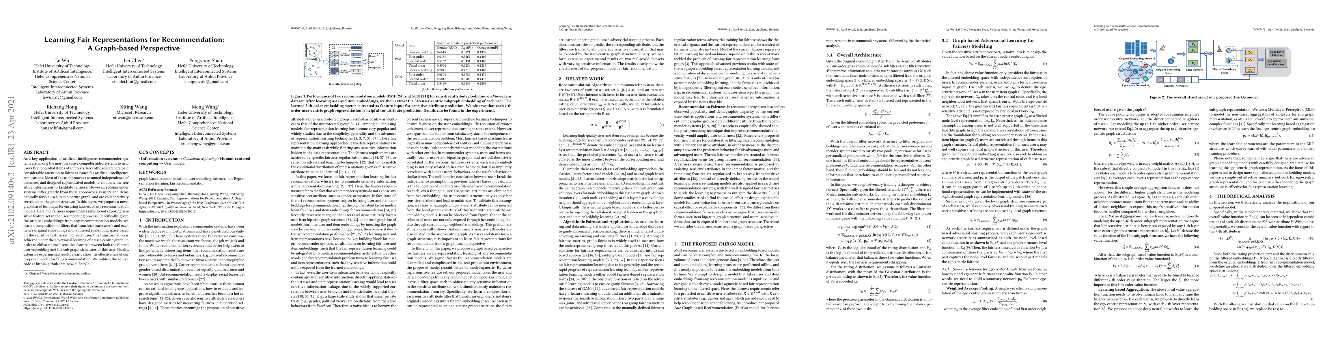 This paper proposes a novel graph-based technique to ensure fairness in recommendation systems by transforming user and item embeddings to avoid using sensitive features. The method uses adversarial learning on a user-centric graph to obfuscate sensitive features, and experiments demonstrate its effectiveness in fair recommendation.