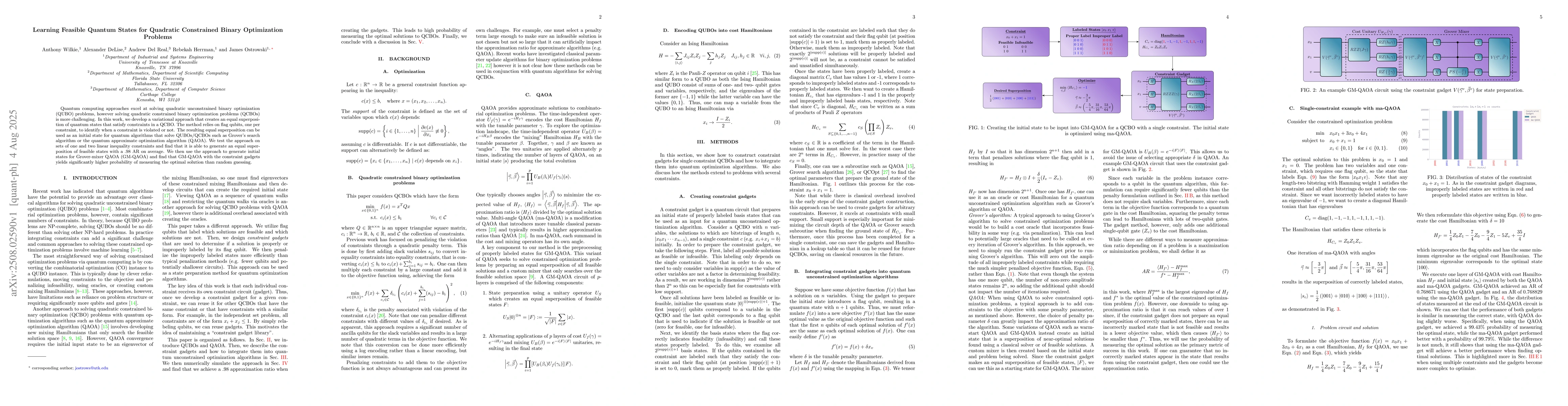 The research introduces a variational approach for generating an equal superposition of quantum states satisfying constraints in Quadratic Constrained Binary Optimization (QCBO) problems using flag qubits. This method prepares an initial state for quantum algorithms like Grover's search algorithm or the Quantum Approximate Optimization Algorithm (QAOA).