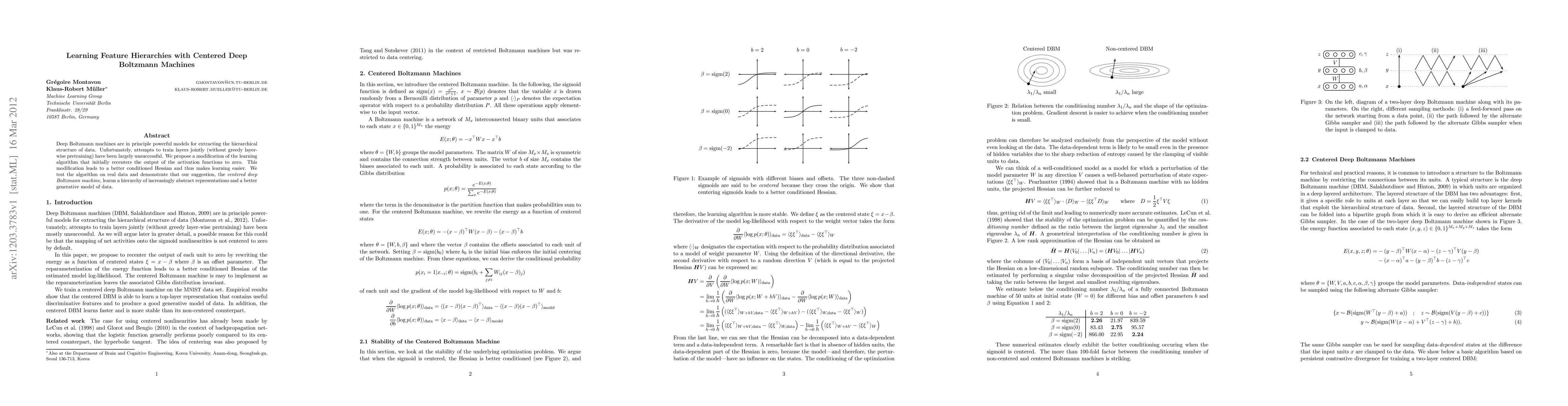 This paper proposes a modification to the training algorithm for deep Boltzmann machines by centering the output of activation functions, which improves the conditioning of the Hessian, facilitating easier learning. The resulting centered deep Boltzmann machine effectively learns hierarchical data structures and provides a better generative model.