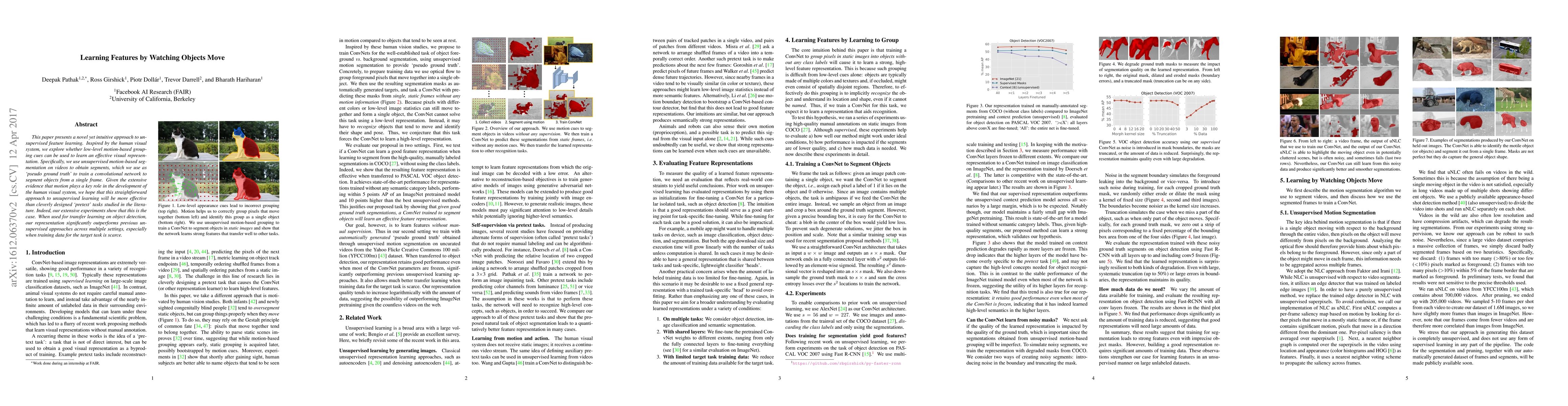 A new approach to unsupervised feature learning uses motion-based grouping cues to learn an effective visual representation, outperforming previous methods in object detection tasks.