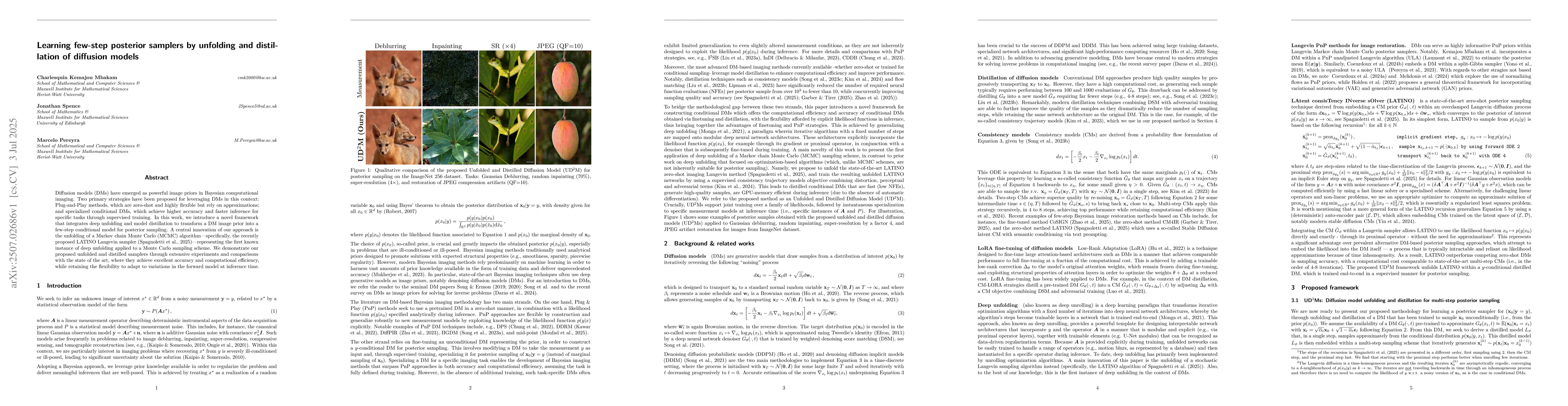 Diffusion models (DMs) have emerged as powerful image priors in Bayesian computational imaging. Two primary strategies have been proposed for leveraging DMs in this context: Plug-and-Play methods, which are zero-shot and highly flexible but rely on approximations; and specialized conditional DMs, which achieve higher accuracy and faster inference for specific tasks through supervised training. In this work, we introduce a novel framework that integrates deep unfolding and model distillation to transform a DM image prior into a few-step conditional model for posterior sampling. A central innovation of our approach is the unfolding of a Markov chain Monte Carlo (MCMC) algorithm - specifically, the recently proposed LATINO Langevin sampler (Spagnoletti et al., 2025) - representing the first known instance of deep unfolding applied to a Monte Carlo sampling scheme. We demonstrate our proposed unfolded and distilled samplers through extensive experiments and comparisons with the state of the art, where they achieve excellent accuracy and computational efficiency, while retaining the flexibility to adapt to variations in the forward model at inference time.