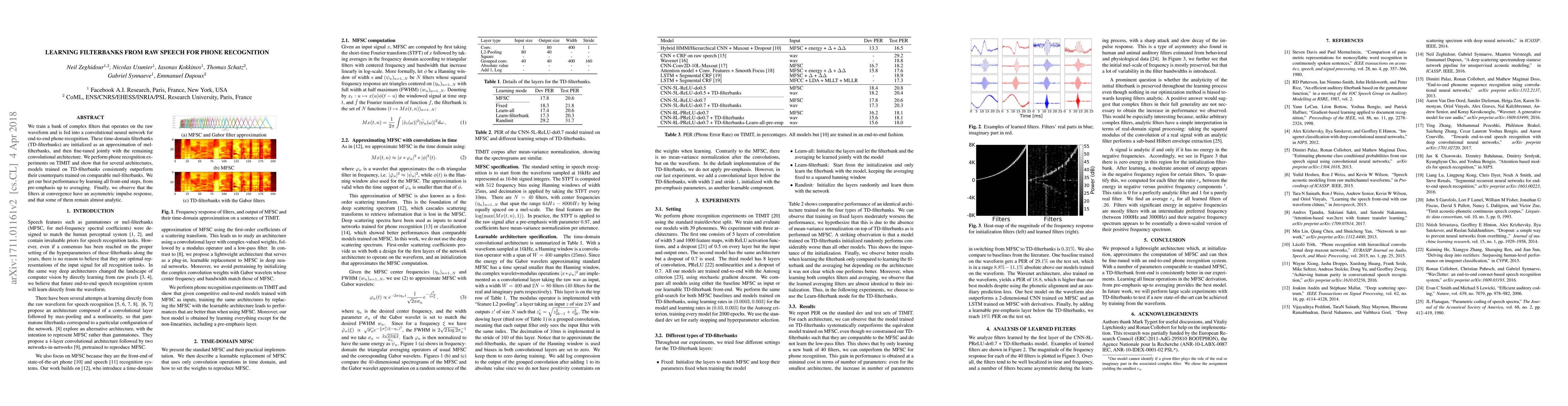 This paper proposes training time-domain filterbanks directly from raw speech waveforms, which are then used to feed a convolutional neural network for phone recognition. Experiments show that models trained with these learned filterbanks outperform those trained with traditional mel-filterbanks, achieving better performance through end-to-end training that includes all front-end processing steps.