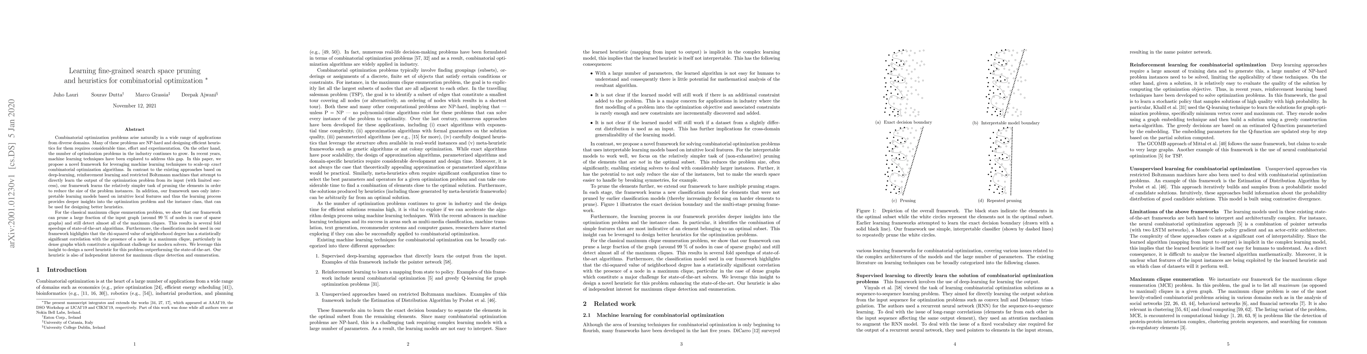 Researchers developed a machine learning framework to efficiently solve combinatorial optimization problems by pruning large search spaces, resulting in significant speedups for specific applications like maximum clique enumeration.