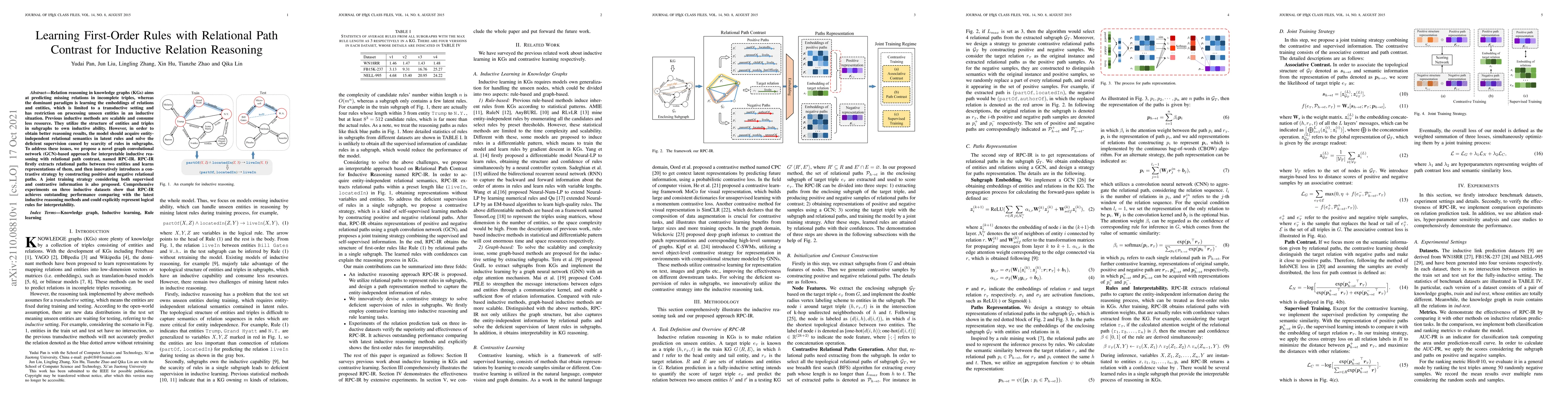 The paper proposes RPC-IR, a GCN-based approach for inductive relation reasoning in knowledge graphs, which uses relational path contrast to learn entity-independent semantics and improve reasoning performance through a joint training strategy combining supervised and contrastive learning. Experimental results demonstrate RPC-IR's superior performance and interpretability over existing inductive reasoning methods.