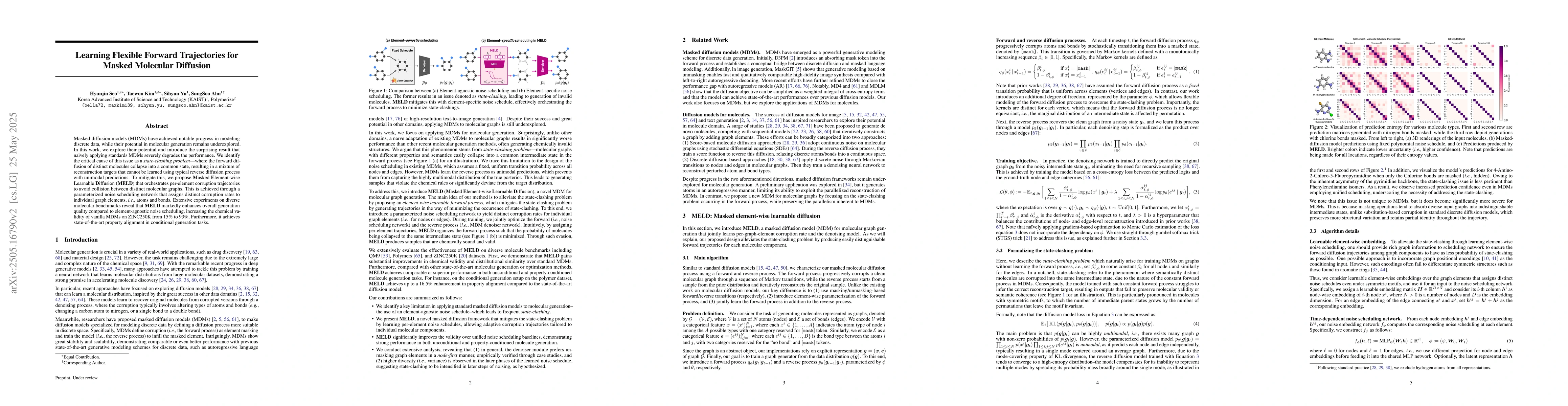 Researchers develop a new method to improve molecular diffusion models, called Masked Element-wise Learnable Diffusion (MELD), which increases chemical validity by 78% and achieves state-of-the-art property alignment in conditional generation tasks.