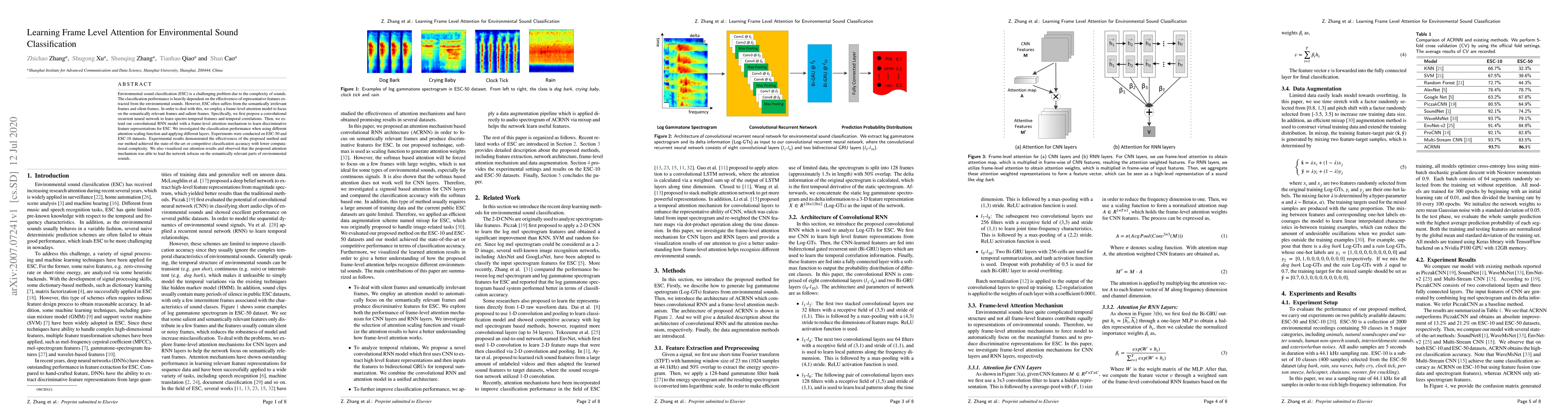 This paper proposes a frame-level attention model to enhance environmental sound classification by focusing on relevant and salient frames. The method combines convolutional recurrent neural networks with an attention mechanism to achieve superior classification performance, outperforming existing methods with lower computational complexity.
