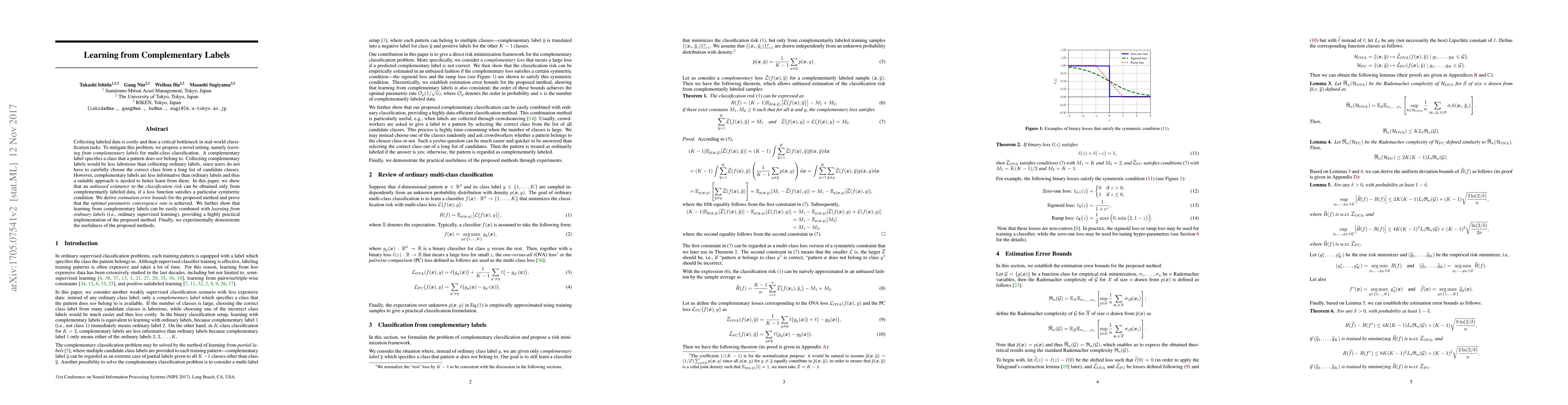 Researchers propose a method to learn from complementary labels in multi-class classification, reducing data collection costs, and demonstrate its usefulness through experimental results.